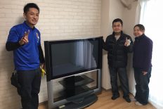 城東区のお宅へテレビの不用品回収に伺いました。お客様と一緒にはい、チーズ!かたづけ招き猫では、このよ…